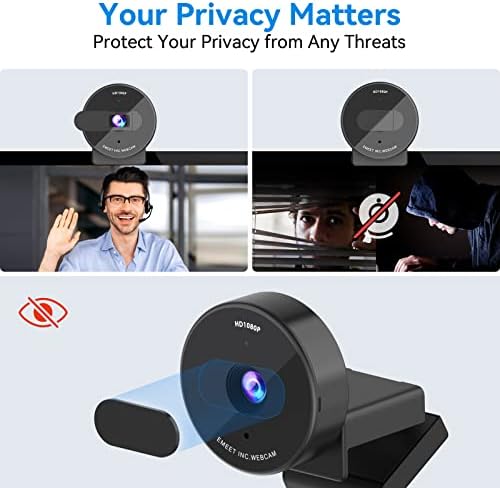 1080P Webcam – USB Webcam with Microphone & Physical Privacy Cover, Noise-Canceling Mic, Auto Light Correction, EMEET C950 Ultra Compact FHD Web Cam w/ 70° View for Meeting/Online Classes/Zoom/YouTube