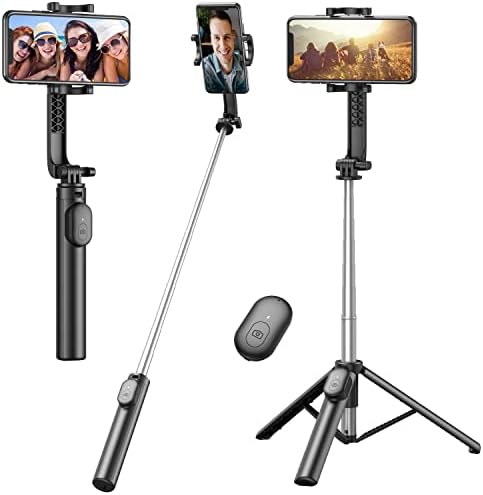 Selfie Stick, Extendable Selfie Stick Tripod with Wireless Remote, Portable Phone Tripod Stand for Group Selfie/Live Streaming/Video Recording Compatible with All Cellphone, Compact Size & Lightweight